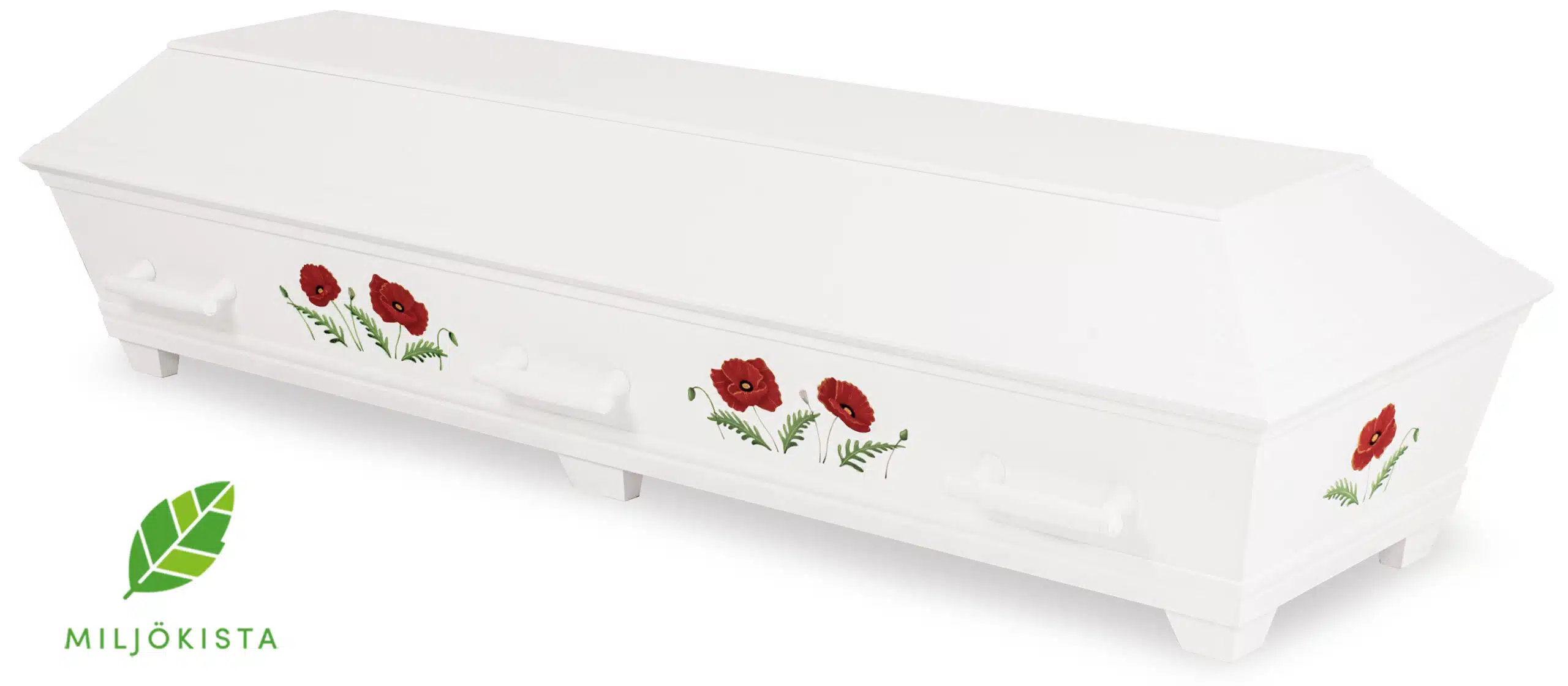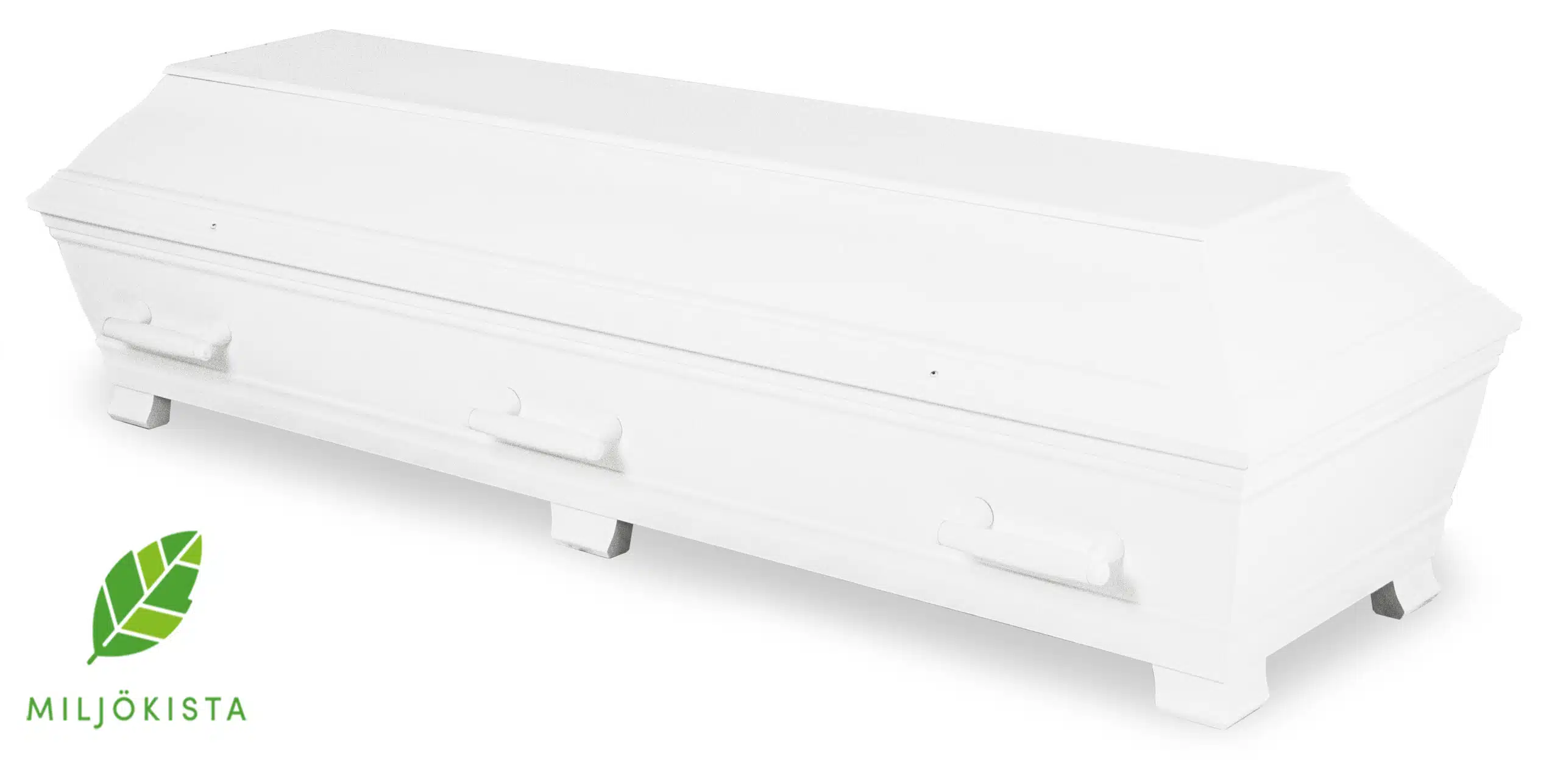 Modern är en kista tillverkad av massiv svensk furu. Denna variant är vitmålad.