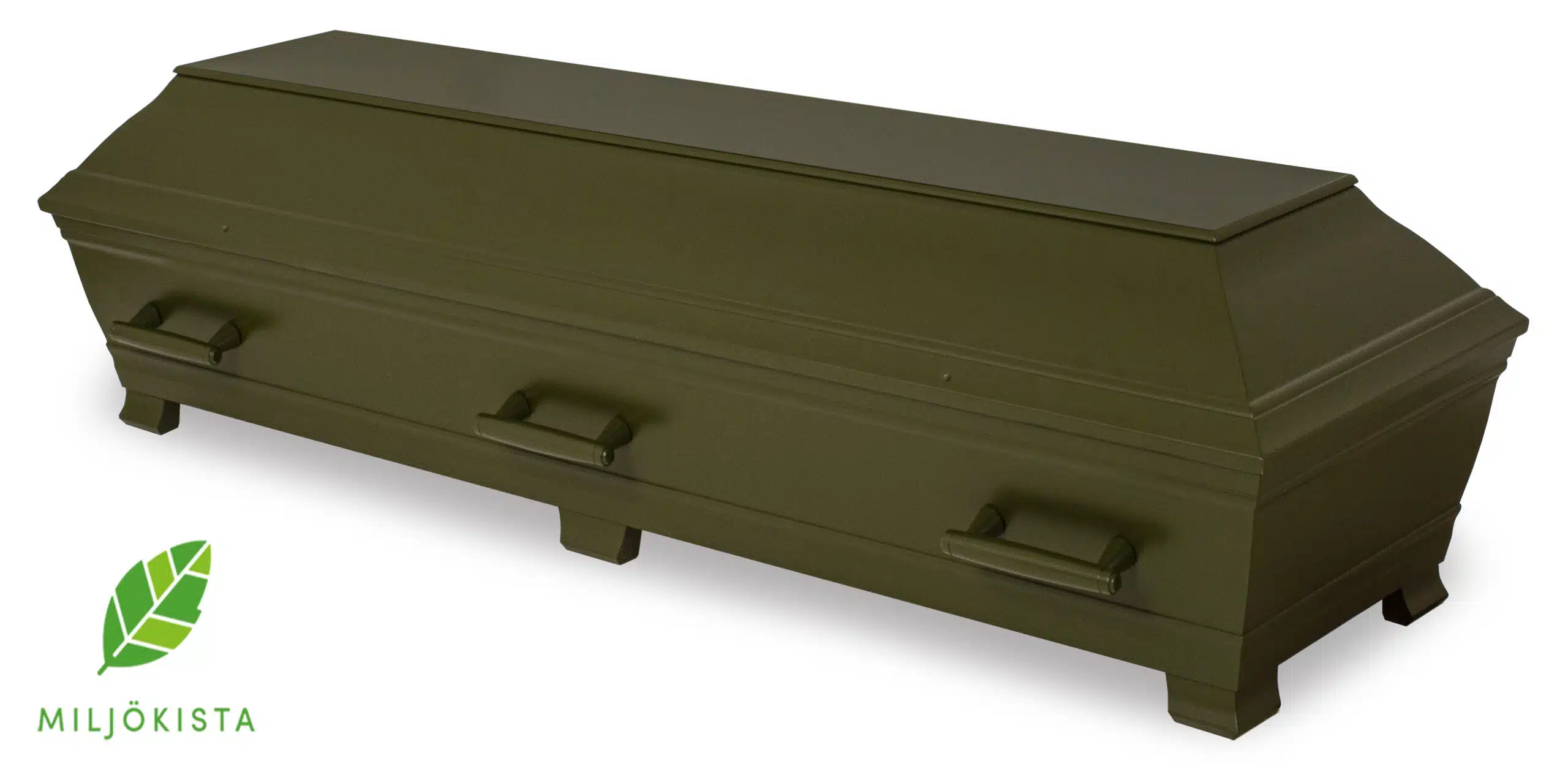 Klassisk är en kista tillverkad av massiv svensk furu. Denna variant är målad i mörkgrön kulör